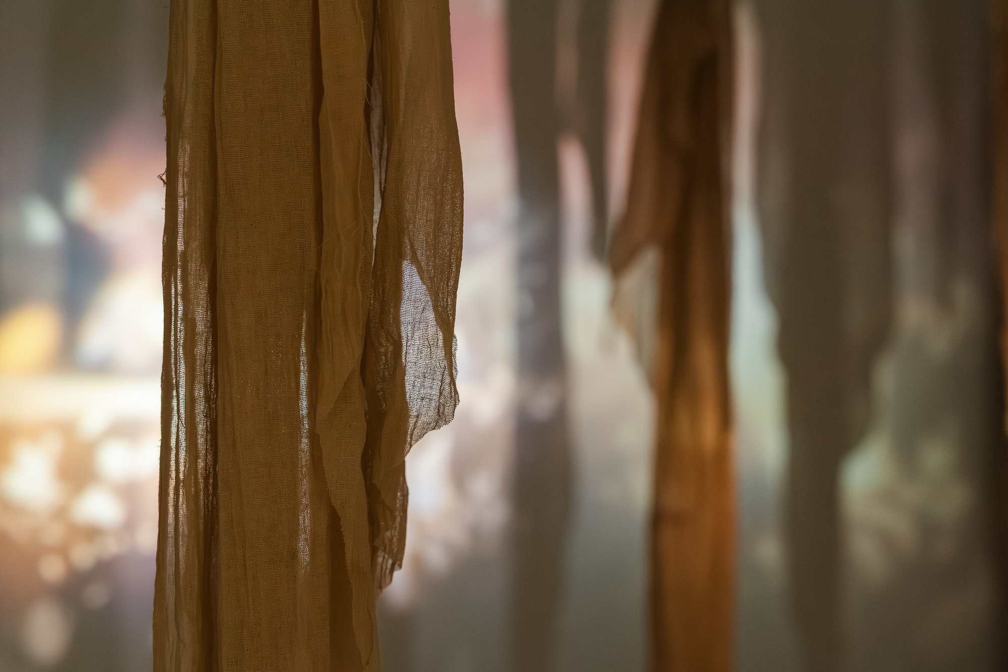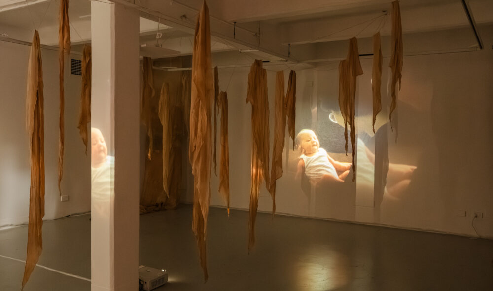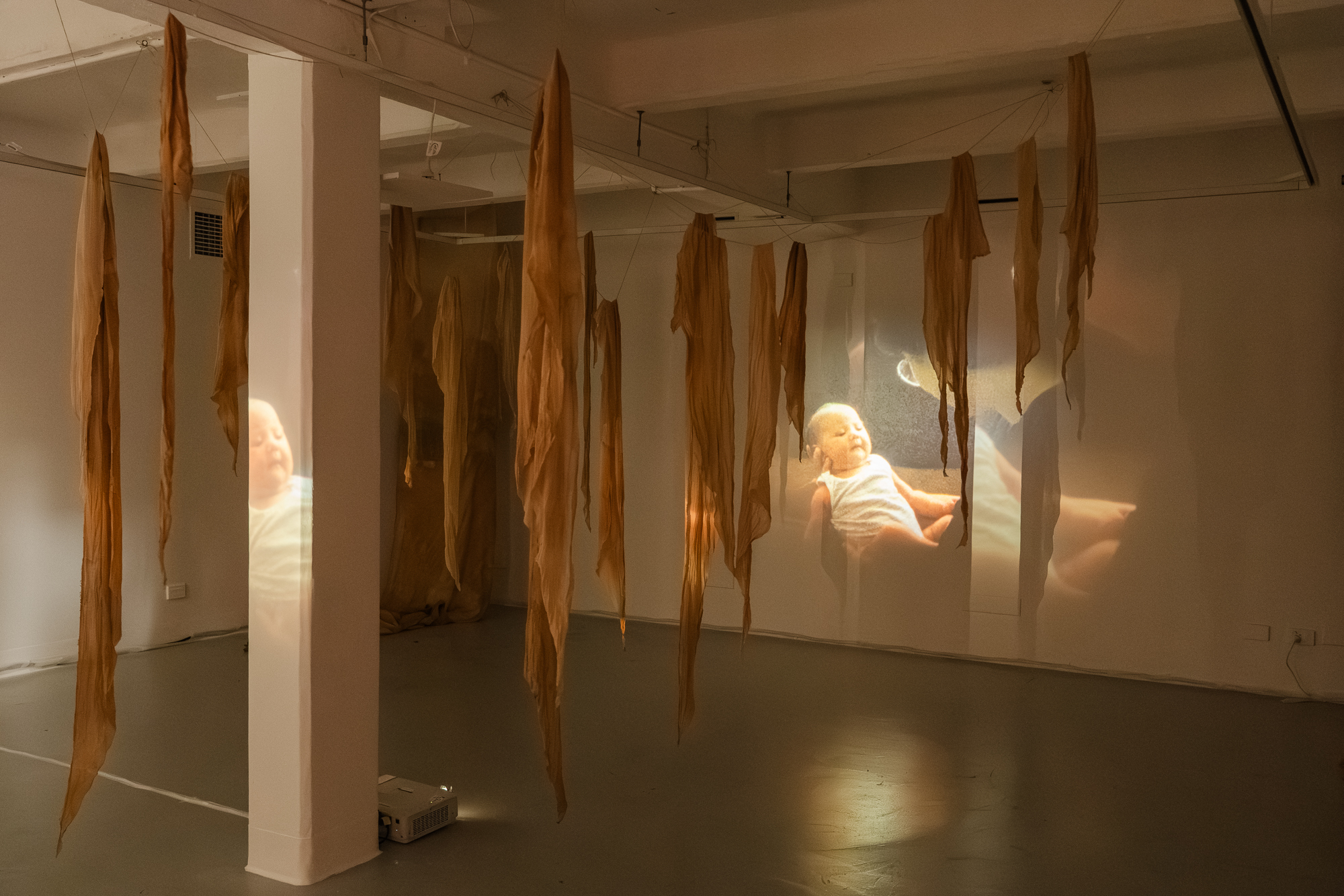 - Medium Super 8 film, surround sound, 15mins loop, tea-dyed muslin