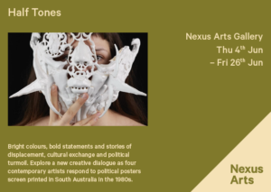 Half Tones is a group exhibition responding directly to screen printed political posters from the 1980s, originally created by a collective of European migrants. Their bright colours and bold statements tell stories of displacement, cultural exchange, and political turmoil.