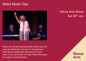 Nexus Arts will be celebrating with a gig that showcases the best of contemporary intercultural collaboration and shows the vast talent of our community of artists, watch this space for program announcements.