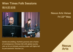 Presented by Wien Times Music, Wien Times Folk Sessions is an intimate evening of contemporary Chinese folk and global sounds, hosted at the Nexus Arts Venue.